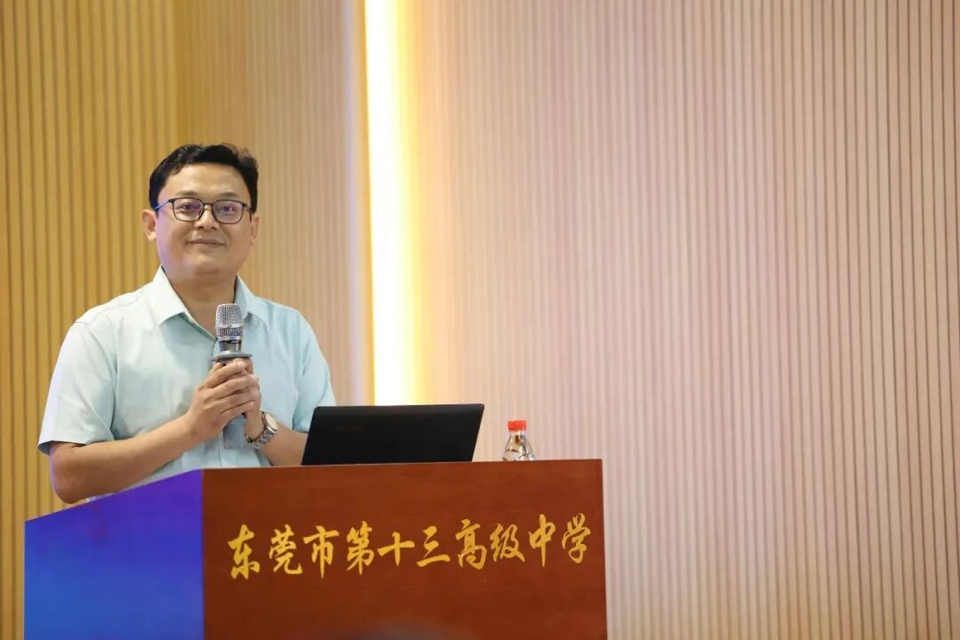 仪式由东莞市第十三高级中学张喜林副校长主持。他代表学校对两个工作室的成立表示热烈祝贺,并指出,名师工作室是促进教师专业成长、推动教育教学改革的重要平台和引擎。学校将全力支持工作室建设,期待工作室在庄照岗、丘小芳老师的引领下,结出丰硕成果,助力学校高质量发展。
