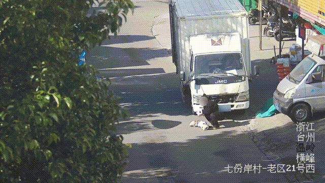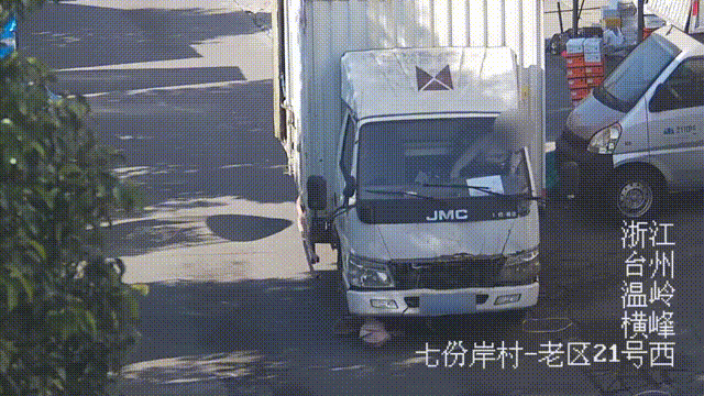 1月13日9时59分许,事发某居民小区内,司机罗某将一辆轻型厢式货车临时停靠于道路旁,随后他便进入路边的店内。这时,一名妇女从店内出来,经过车前避让过往车辆时,随身携带的物品不慎掉落至货车车头正前方,随后,她当即弯腰蹲下在车头盲区处捡拾。